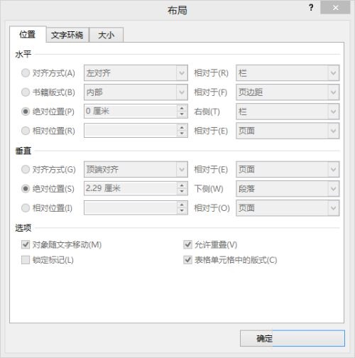 第三步:在“布局选项”里单击“查看更多”,或者在“位置”里单击“其他布局选项”,可弹出“布局”对话框(如图所示)。
