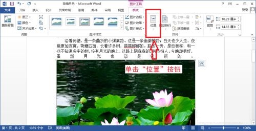 第二步:也可以在“格式”面板中“位置”按钮里设置文字环绕(如图所示)。