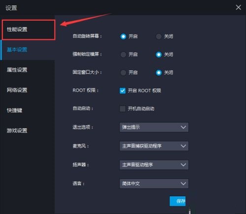 第三步:然后我们点击“性能设置”(如图所示)。