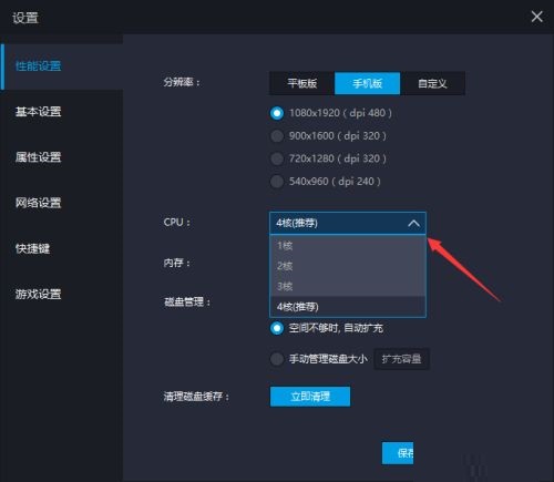 第四步:找到cpu项,选择“4核”就可以了(如图所示)。