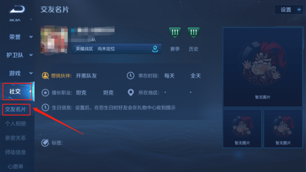 之前小编给大家介绍过,在王者荣耀电脑版上如何加好友,不知道有没有小伙伴注意到,如果使用找朋友的方式来查找添加好友的话,系统推荐的可能感兴趣的人中,都是以名片的形式显示的。而已名片的方式显示信息,不仅可以展示自己的昵称和段位,还能显示想找的好友类型。那么,如果想在王者荣耀电脑版上设置自己的名片,该在哪进行编辑呢?又该如何进行个人信息的设置呢?