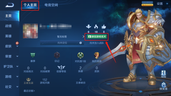 如果使用的是微信登录游戏,除了交友名片外,王者荣耀电脑版上还有对应的微信名片。想要查看微信名片的话,可以直接点击个人主页中的“微信名片”按钮。