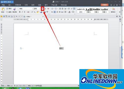 2、然后,反复的点击“增大字号”,几次之后,选中的汉字字体就会变得很大,直到满足你的要求。