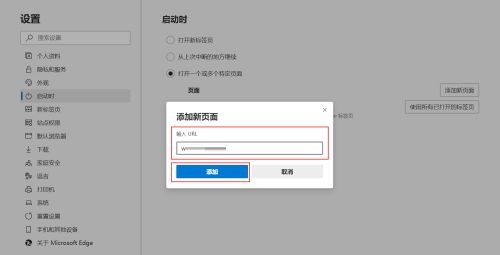 第六步:打开【添加新页面】,输入要添加的特定网址(如图所示)。