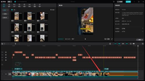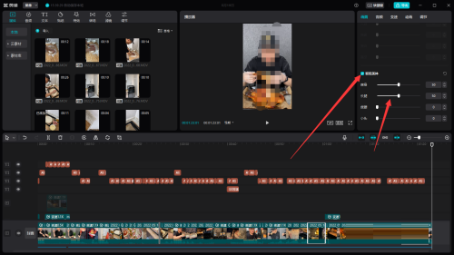 第二步:接着在时间线中选中要拉长腿的视频。