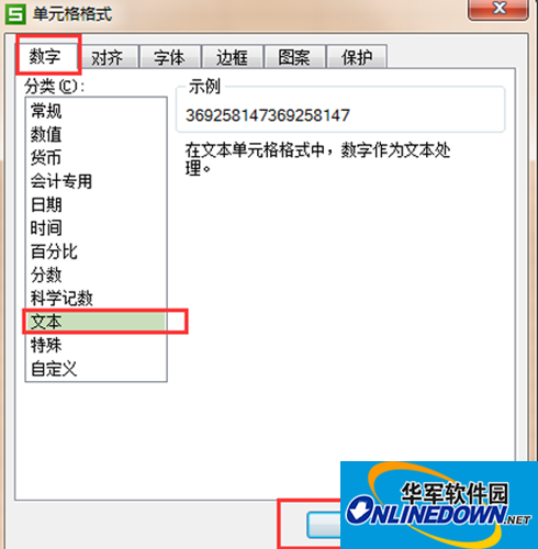 2、在单元格格式选项卡下点击"数字",选择"文本"就可以了