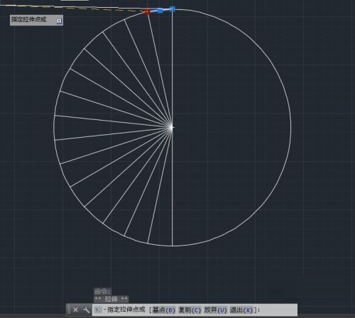 第三步:点击第二处端点,点击拉伸(如图所示)。