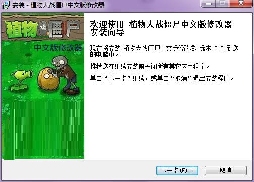 第一步:首先我们在本站将植物大战僵尸中文版修改器下载至本地。将下载的软件包进行双击解压。点击下一步(如图所示)。