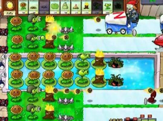 2.开局后两排先种向日葵,土豆冷却一好就下,压力太大的话,可以用倭瓜和火爆辣椒帮忙;
