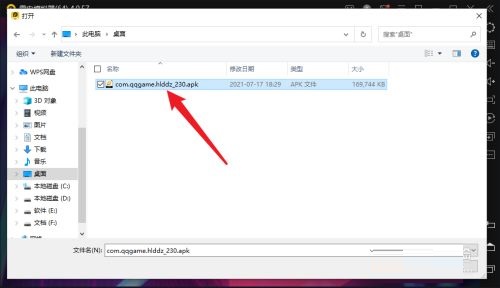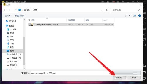 第三步:接着点击游戏apk文件并点击【打开】按钮(如图所示)。