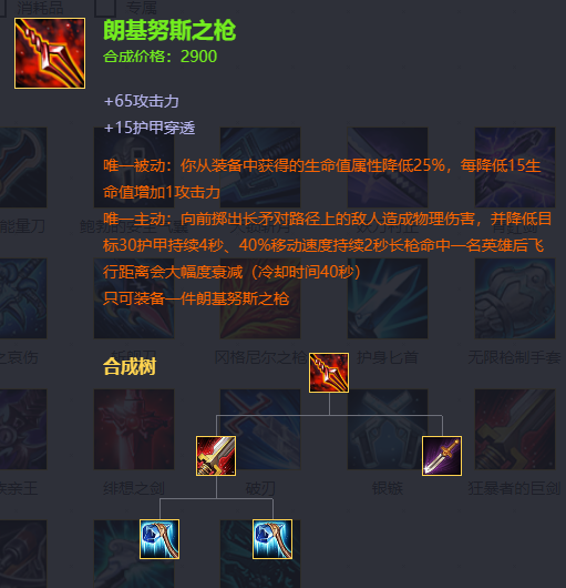 追本溯源,朗基努斯之枪是刺穿耶稣的枪;如果从动漫角度来看,在日漫《新世纪福音战士》中也出现过朗基努斯之枪的身影,且在动漫中是很强大的存在;那我们也来看看游戏中的表现,300英雄中的朗基努斯之枪可以提供高额攻击以及一定护甲穿透,而且还让使用者以减少生命提升为代价,从而获得更高的攻击力,可以说是“不要命的输出”。