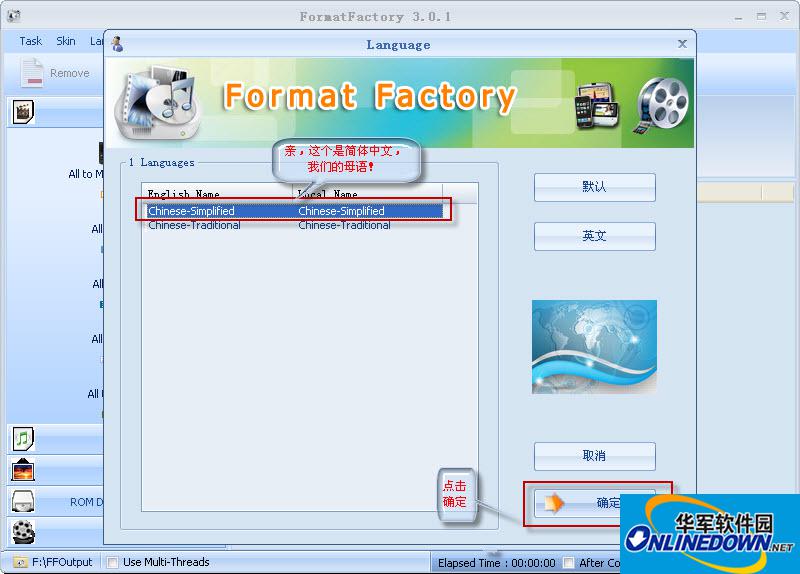 格式工厂据说是一个国内的帅锅开发的,只是由于国内软件行业收费软件不好做,才转而向国外发展,所以有时我们在网上下载的版本是默认英文版的。