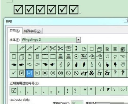 第六步:因为方框对号的符号最近使用过,下次还需要使用的时候,直接点“符号”就会出现,不用再去重新选择插入了(如图所示)。