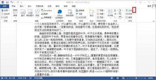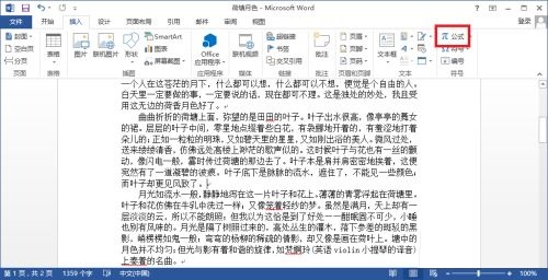 第一步:打开Word 2013软件,在“插入”面板中找到“公式”按钮,单击右侧的小箭头(如图所示)。