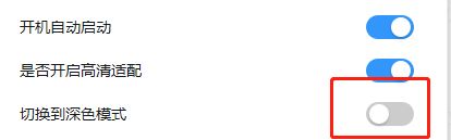 第三步:点击<切换到深色模式右边的按钮>,打开开关,这样就完成了(如图所示)。