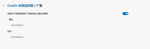 第六步:进入广告选项,开启在显示干扰或误导性广告的站点上阻止即可(如图所示)。