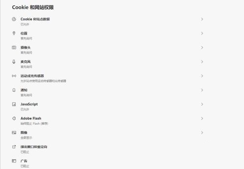 第五步:进入Cookie和网站权限,选择广告(如图所示)。