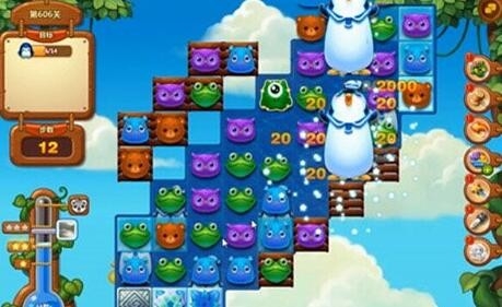 5,其实下方的企鹅是很难消除的,也是这一关的重点,因为会受到毒液的危害,所以当石门盖住章鱼以后,我们要快速的消除毒液,然后解救出下侧的企鹅,因为企鹅是布满整个关卡的,所以我们需要在中间制作出大量的特效消除。