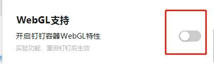 第三步:点击<开启钉钉容器WebGL特性右边的开关>,打开开关,这样就完成了(如图所示)。