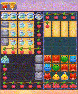 首先第一步,我们需要消除雪块并向下击打樱桃,然后引爆让动物方块掉落并进行填充,也可以成功激活重力场的装置。
