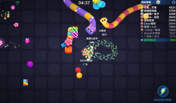 2,大部分情况,在一条蛇变成尸体以后,他的糖果会引来很多的玩家争夺,所以也很容易造成多条蛇相撞的情况出现,所以我们一定不要第一时间就赶往事故现场,等待其他玩家争先恐后的去了,这样是很危险的,所以也要学会加速和刹车,才能让自己更加安全。