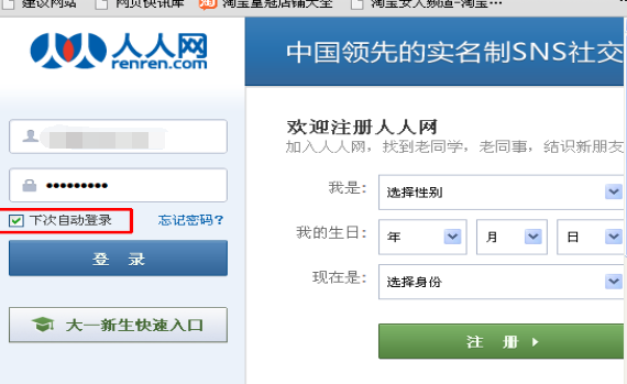 2.在网站登录页面输入账户信息,选择“下次自动登录”,点击登录。