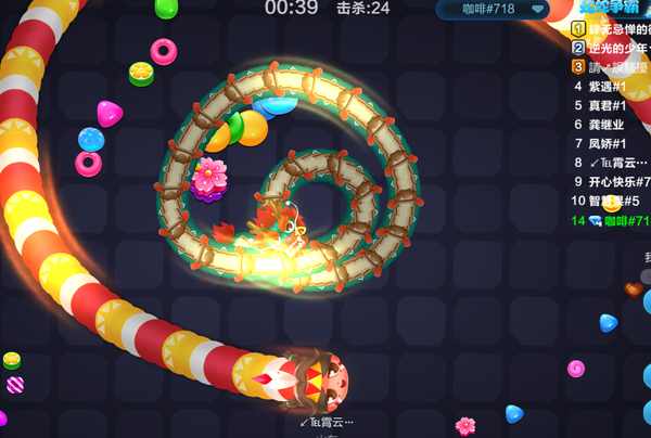 1,体验游戏时会发现有些玩家比较勇猛,喜欢冲在前面,去玩家多的地方并不断的发起了攻击,这种玩家一般有两种极端的后果,那就是发育很快,吃到更多糖果,把自己养的非常肥。