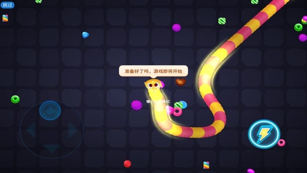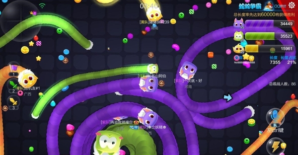 如果你吃了很多的糖果已经很长了,就可以在游戏地图上以大欺小去围堵其他的小蛇,把他们圈到自己的肚子里,然后等待他撞击你的身体就可以击败对方并获得糖果。