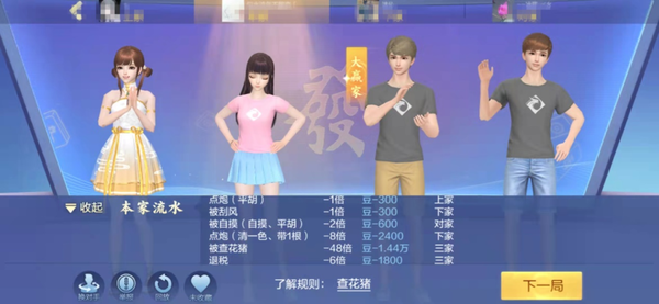 2,这种惩罚模式不会让用户输掉游戏豆,但是会输掉之前赢到的游戏豆,如果不想受到这种惩罚,我们需要在对局时尽快的听牌才可以免受退税的惩罚。