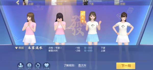 3,有一点好处就是我们可以利用查大叫这种惩罚规则来赢取更多的游戏豆,比如在游戏的后期,我们的手牌很差,不太可能胡牌时,我们就可以放弃胡牌,去听一些不可能胡牌但是倍数很高的牌,这样当牌局正式结束后,如果有对手没有听牌而被查大叫了,那么本家就可以获得很多的赔付游戏豆,是不是很合适呢。