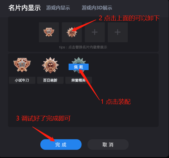 该操作还是在勋章界面中完成,我们点击界面右侧的“名片展示”模块。