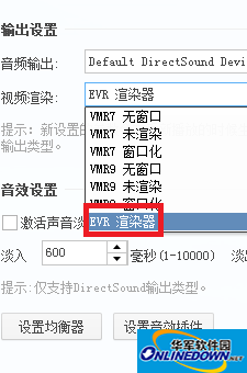 3:再在其右边的视频渲染中选择,EVR渲染器方式。