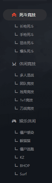 3、娱乐模式。和休闲竞技比,更具娱乐性,其中包括躲猫猫、僵尸逃跑、KZ、BHOP等模式。