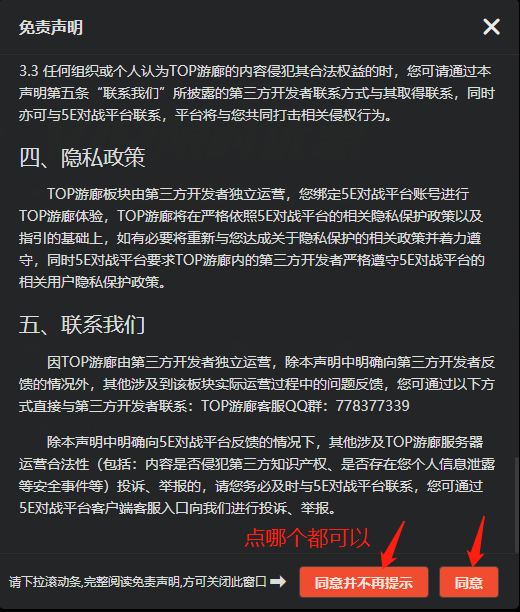 在我们进入“TOP游廊”之前,我们还需完全阅读并同意协议,之后才可进入界面。