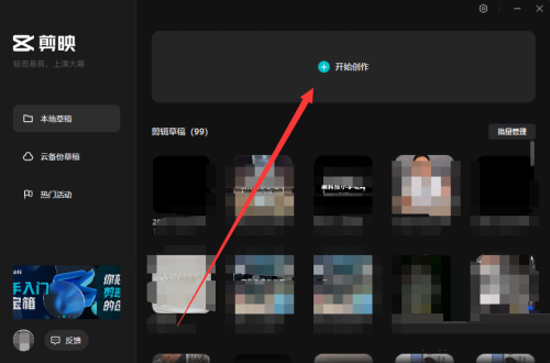 第一步:打开剪映电脑版,点击上方加号进入软件主页。