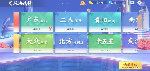 在QQ游戏平台上还为大家推出了各种小众的地方玩法,因为不同的地区有着不一样的规则,除了比较火爆的广东麻将和四川麻将以外,还有贵阳捉鸡、北方推倒胡、南京麻将、长沙麻将、杭州麻将、卡五星、和武汉麻将多种玩法,每一种都有着大量的人群,大家快去体验吧。