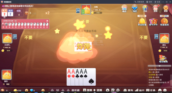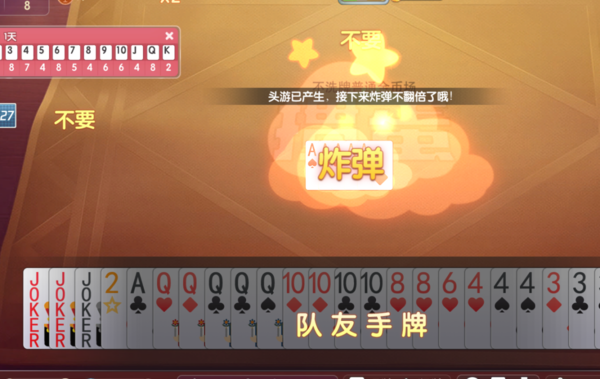 2,当我们炸它的时候就可以阻断它的出牌次数,为自己获胜提高概率。相反,如果对方只剩四张牌时就不需要再出炸了。
