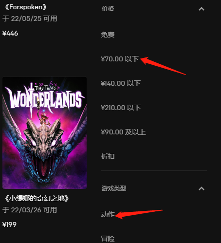2、游戏价格。总有一些玩家,即使是玩游戏也要做到“精打细算”;对此,Epic游戏平台也会满足这些玩家的需求,设置了价格区间分类,这样“精打细算”型玩家就方便了不少。