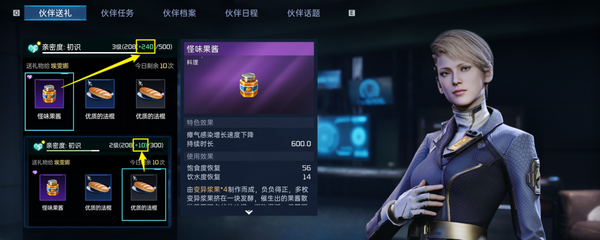 2,现在你知道去哪里寻找河谷异种凝胶了吗,小编还要提醒大家,使用这些特殊稀有的食材进行特定烹饪的话,比如怪味果酱等于4个变异浆果,如果赠送给同伴可以拥有更多的亲密度,帮助你解锁亲密度的对应奖励。