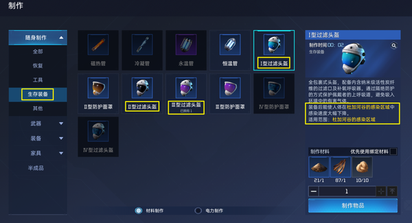 1,小编还要温馨提醒大家,在通过高感染区时一定要千万小心,毕竟这种区域很容易让大家感染,用杜加河谷的星舰废墟举例子,这里的瘴气不是普通的玩家能够承受的,所以进入高感染区之前一定要把生存的装备也就是过滤头盔携带好。