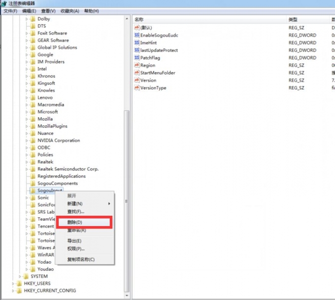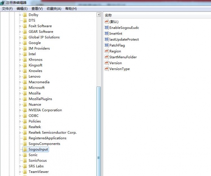 32位机器(XP、win7 32位)的路径如下:HKEY_LOCAL_MACHINESoftWareSogouInput