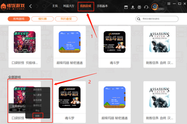如果不想使用某款游戏了,玩家可以在“我的游戏”一栏中,选中对应游戏图标,单击鼠标右键,选择“卸载”功能来删除。