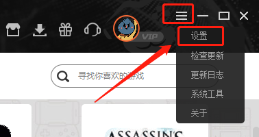 在电脑上打开悟饭游戏厅后,点击页面右上角的三根横线图标,选择“设置”选项。