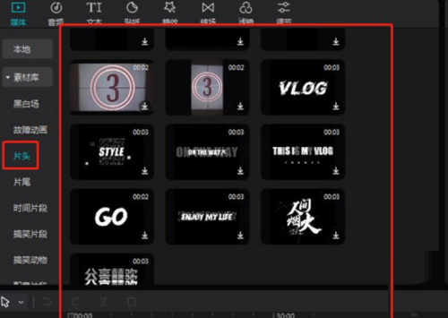 第三步:选择你想要使用的一个素材库分类,可以显示该分类下的很多素材。