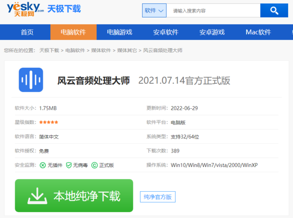 要说风云音频处理大师,那它就是一款集高效、易用、实用免费于一身的软件,且软件支持支持mp3到flac、m4a、wav、ogg等格式的音频转换,以及mp3等多种格式的音频剪切、合并、提取等功能。