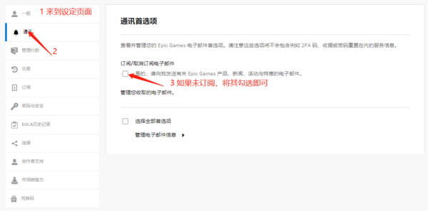 下面则教大家操作步骤:首先进入Epic的设置页面,然后在左边模块栏找到“通讯”,接着右边就可以看到“订阅/取消订阅电子邮件”,我们将此选项打勾即可成功订阅Epic的电子邮件;这样一来,我们不但可以第一时间了解相关信息,还可以获得15美元的游戏优惠券,可谓是一箭双雕。