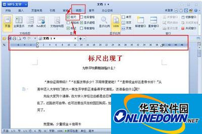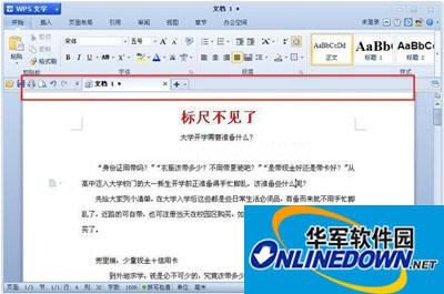 1、标尺不见时,文章上方很明显可以看得出来。如图所示: