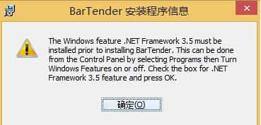 以上两个Bartender安装程序信息的弹出,都是因为电脑系统内没有安装合适的.NET Framework组件。Bartender 10.1是基于.NET Framework 3.5环境运行,缺少必备的运行环境自然会出现安装错误,正确安装.NET Framework组件就可以解决这一BarTender常见问题了。
