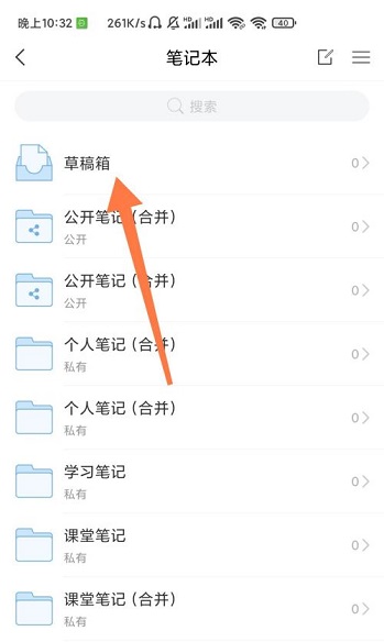 第三步:进入笔记本页面,点击【草稿箱】即可查看(如图所示)。