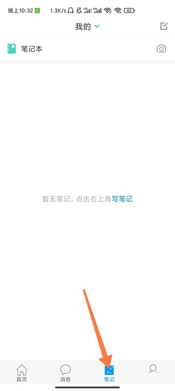 第一步:进入学习通页面,点击【笔记】(如图所示)。